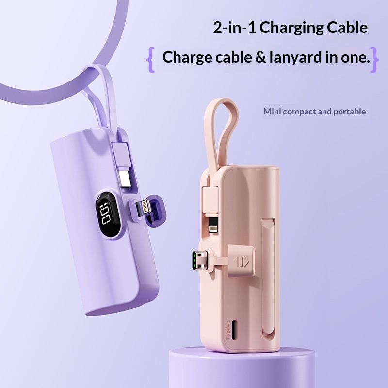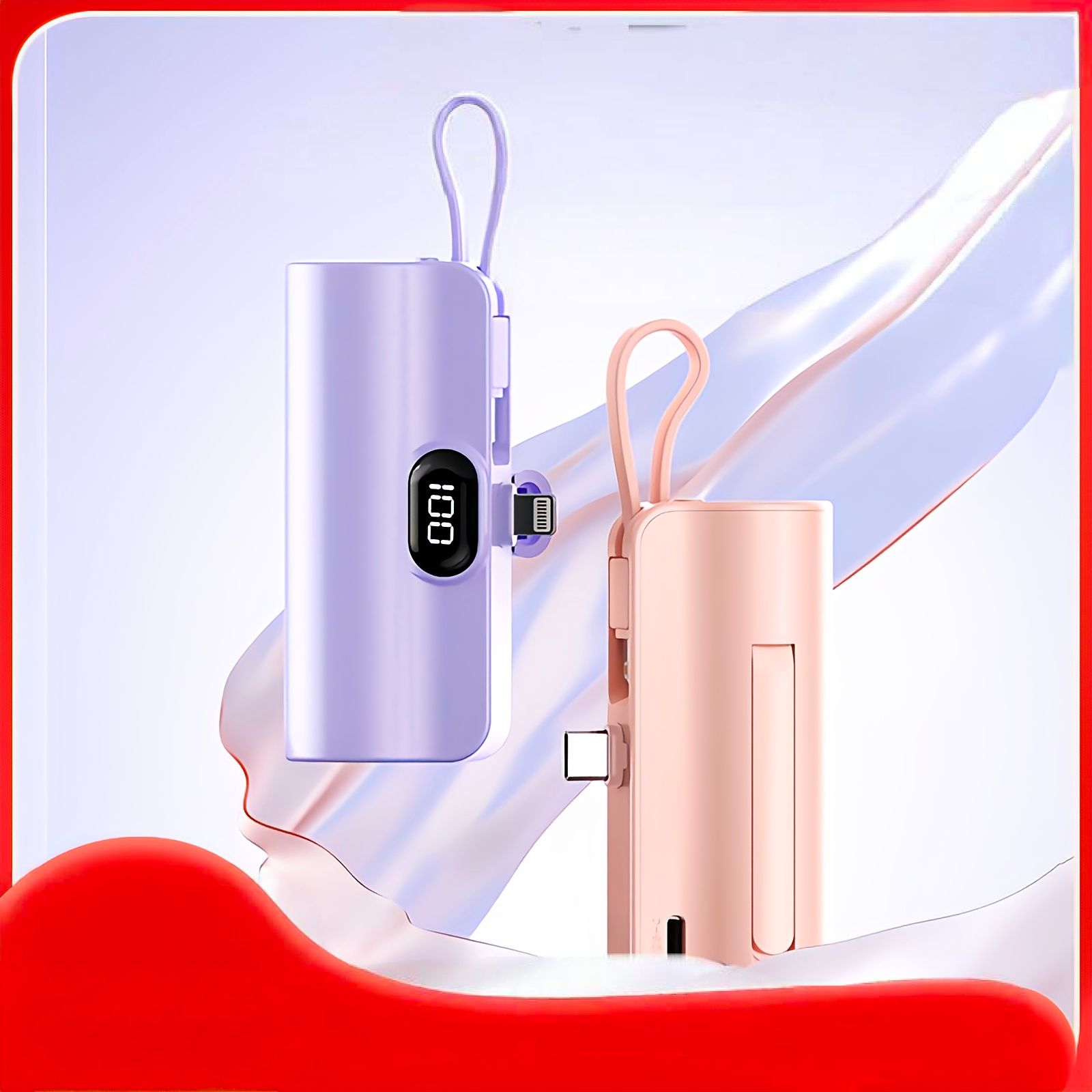 INTEGRATED CONVENIENT DESIGN: Designed with a built-in charging cable. Lightning+ Type-c two output design, can charge two devices at the same time, compatible with different models, easy to charge anytime.