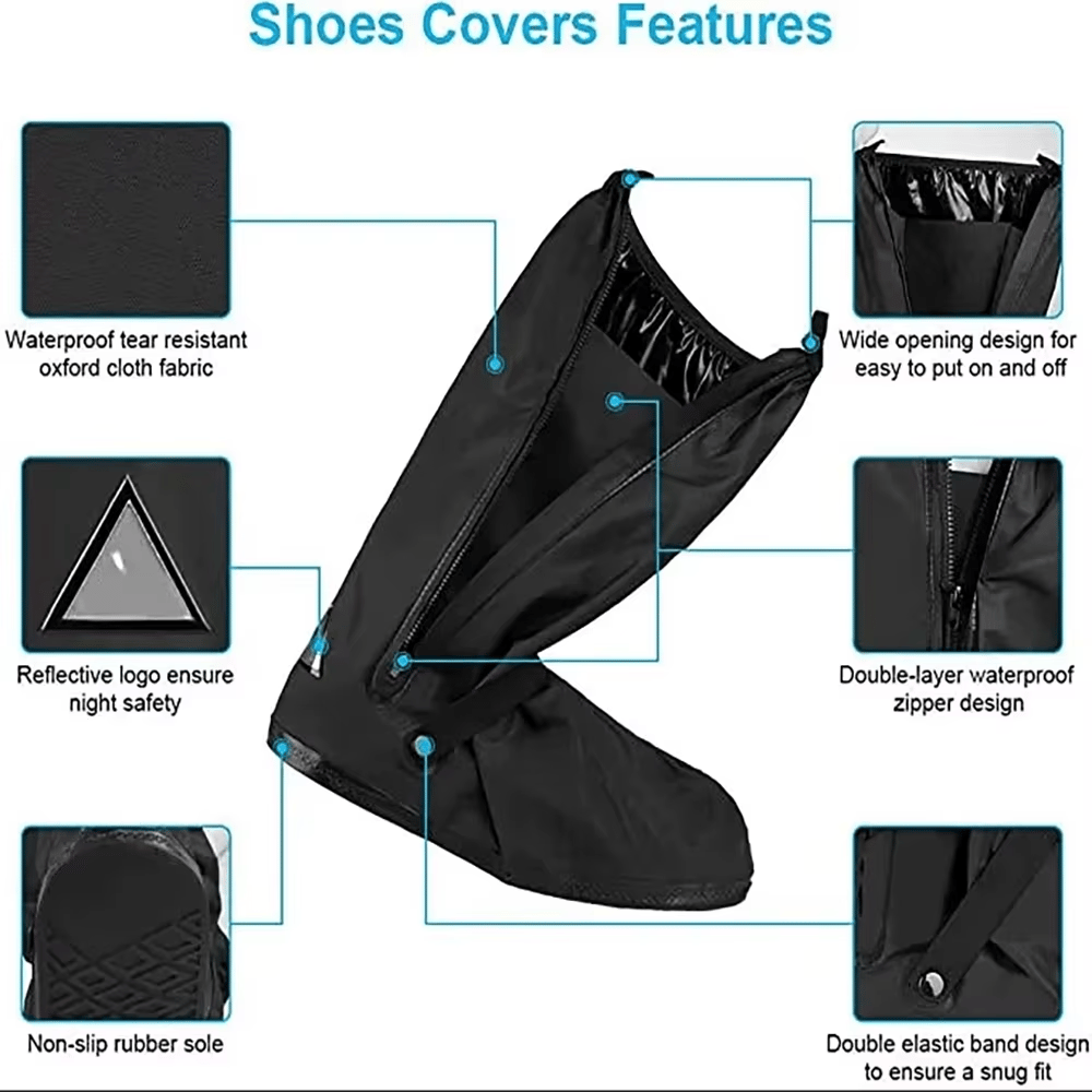 Good elasticity at the top, robust zipper and anti-slip elastic provide extra comfort. The non-slip sole allows you to walk in mud without slipping, and the reflective strip at the heel increases safety when driving at night.