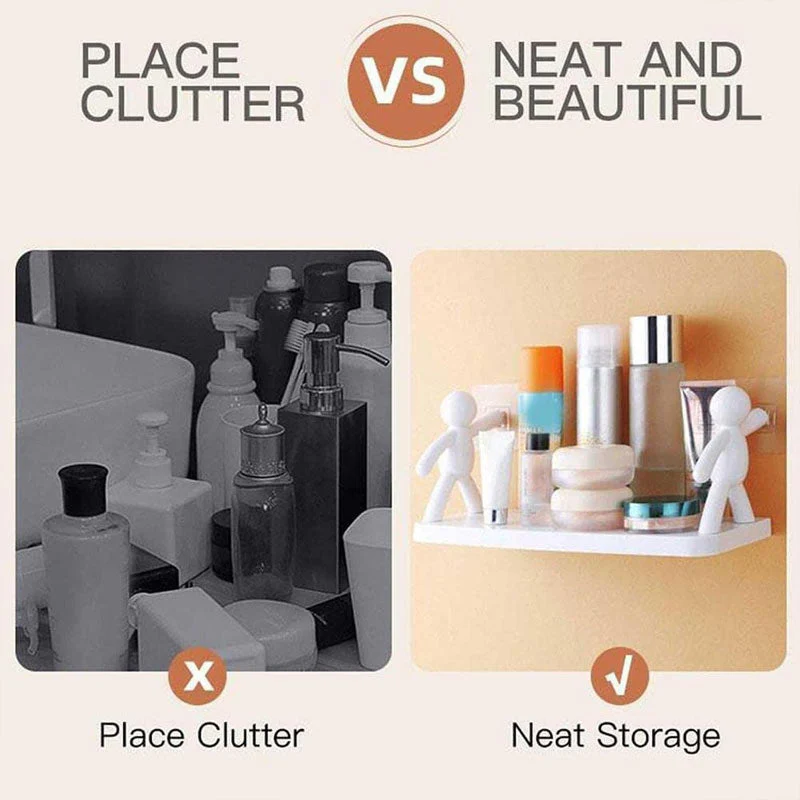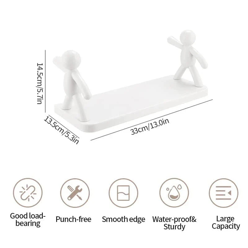 💡 Tip: Buy two, one for the kitchen and one for the bathroom, for a more organized home! 🧼 Transform your bathroom or kitchen with our self-adhesive wall-mounted storage shelf in a cute little character design! Easy to install, leaves no marks and keeps your small items organized and easily accessible. 🧽🧴